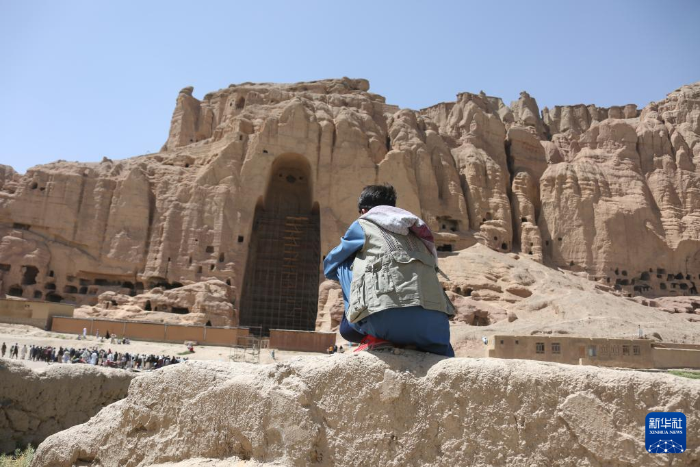 这是7月10日在阿富汗巴米扬拍摄的石窟。