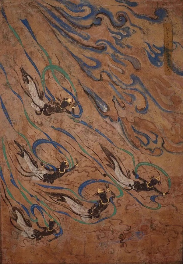 现居北京的甘肃两当县油画家靳春岱(代山)的油画,丰富了当地敦煌画派的艺术构成,其绘画艺术形象为抽象艺术与多种文化的复合体。敦煌飞天模糊地出现在画面中,能使人感受到印度佛教天人和中国道教羽人、西域飞天和中原飞天等多种元素的图像组合,凭借飘曳的衣裙、飞舞的彩带来表现凌空翱翔的飞天形象,展示了东方想象与西方油画艺术意象的完美融合。